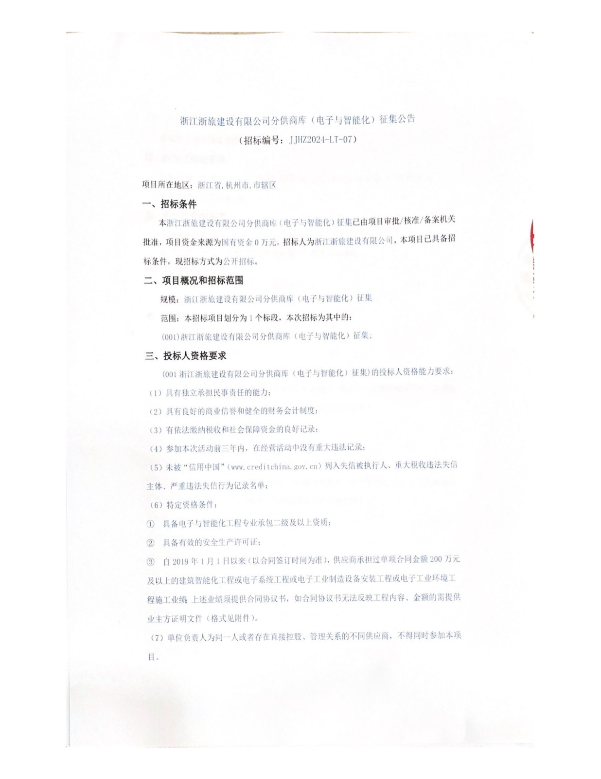 浙江浙旅建設(shè)有限公司分供商庫(kù)(電子與智能化)征集公告