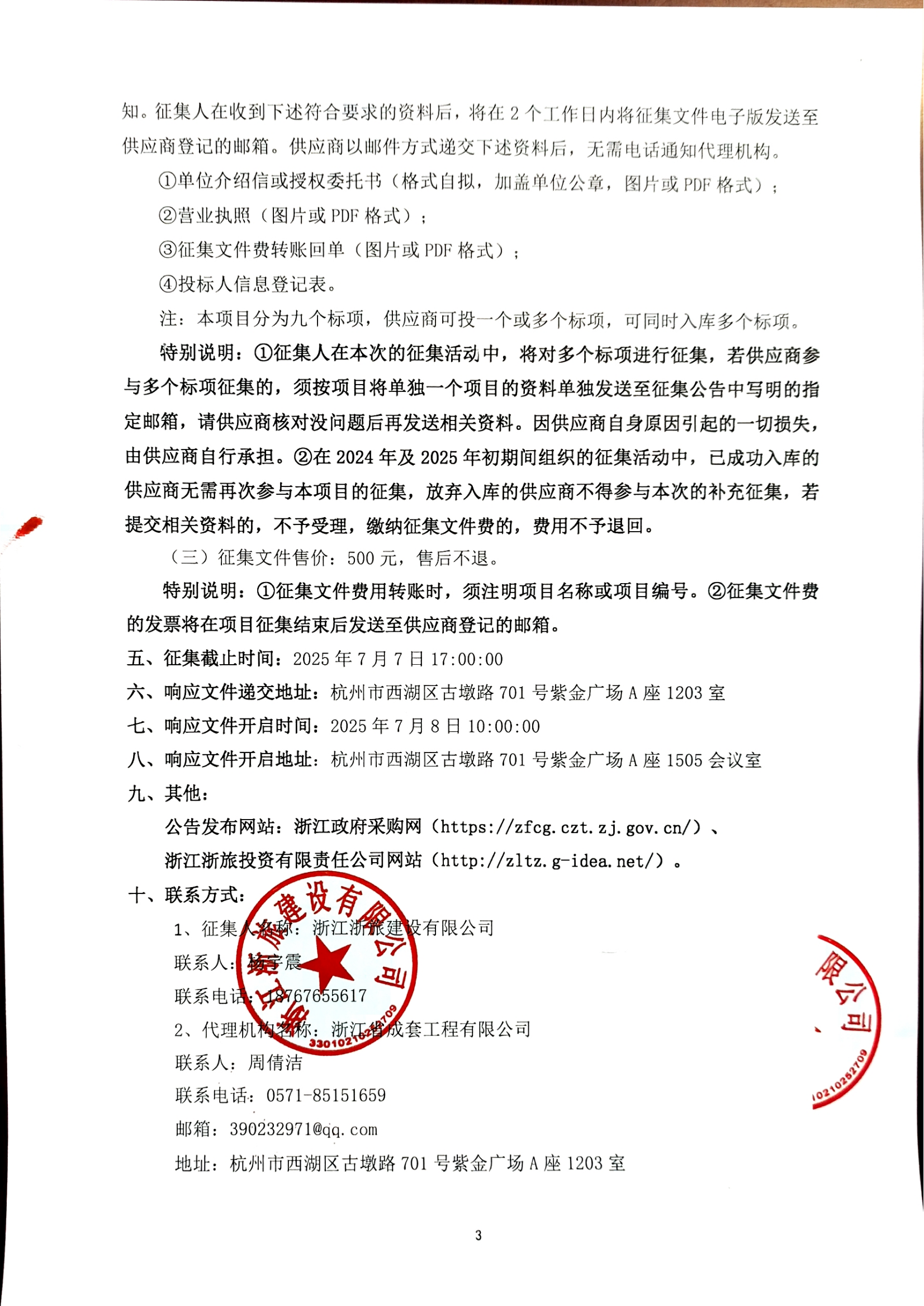 浙江浙旅建設(shè)有限公司供應(yīng)商補(bǔ)充征集(四)征集公告