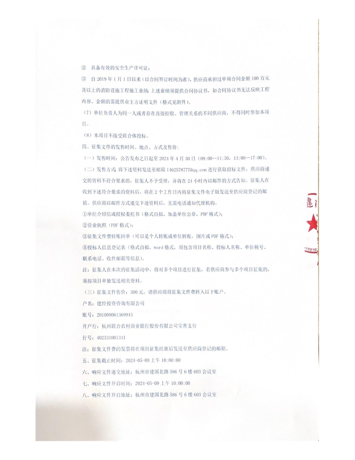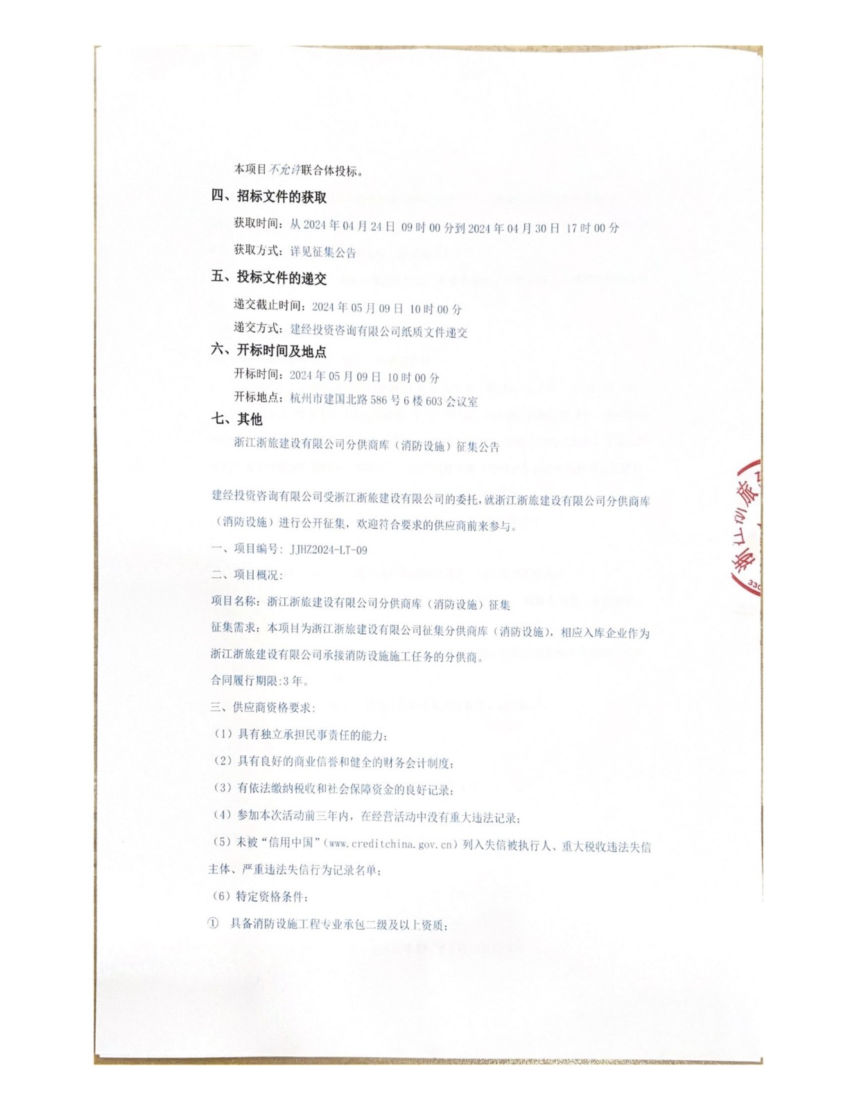 浙江浙旅建設有限公司分供商庫(消防設施)征集公告