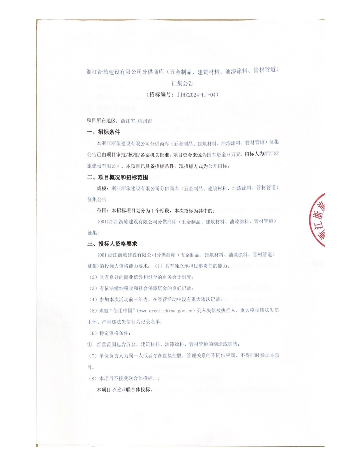 浙江浙旅建設(shè)有限公司分供商庫(kù)(鋼結(jié)構(gòu))征集公告