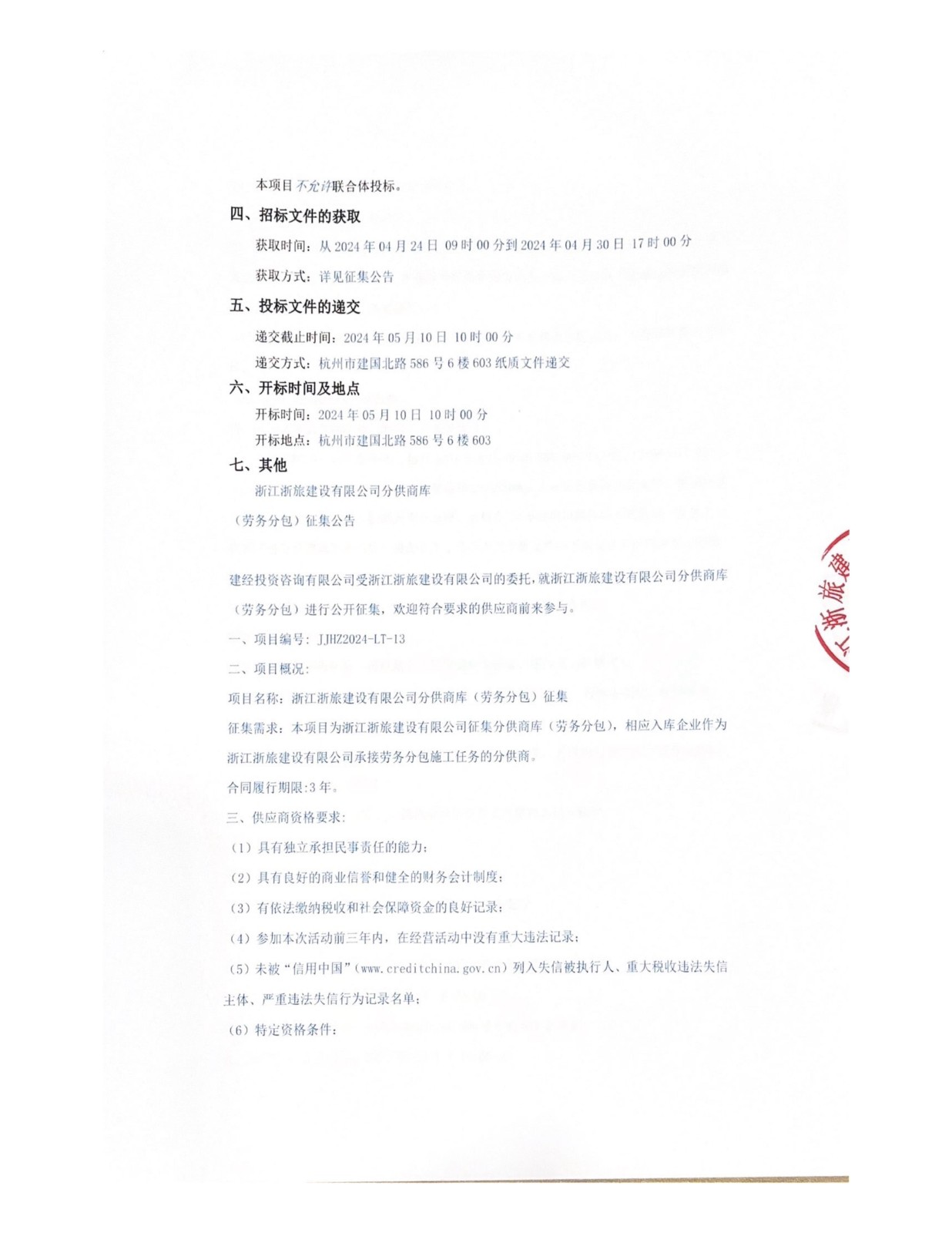 浙江浙旅建設(shè)有限公司分供商庫(勞務(wù)分包)征集公告