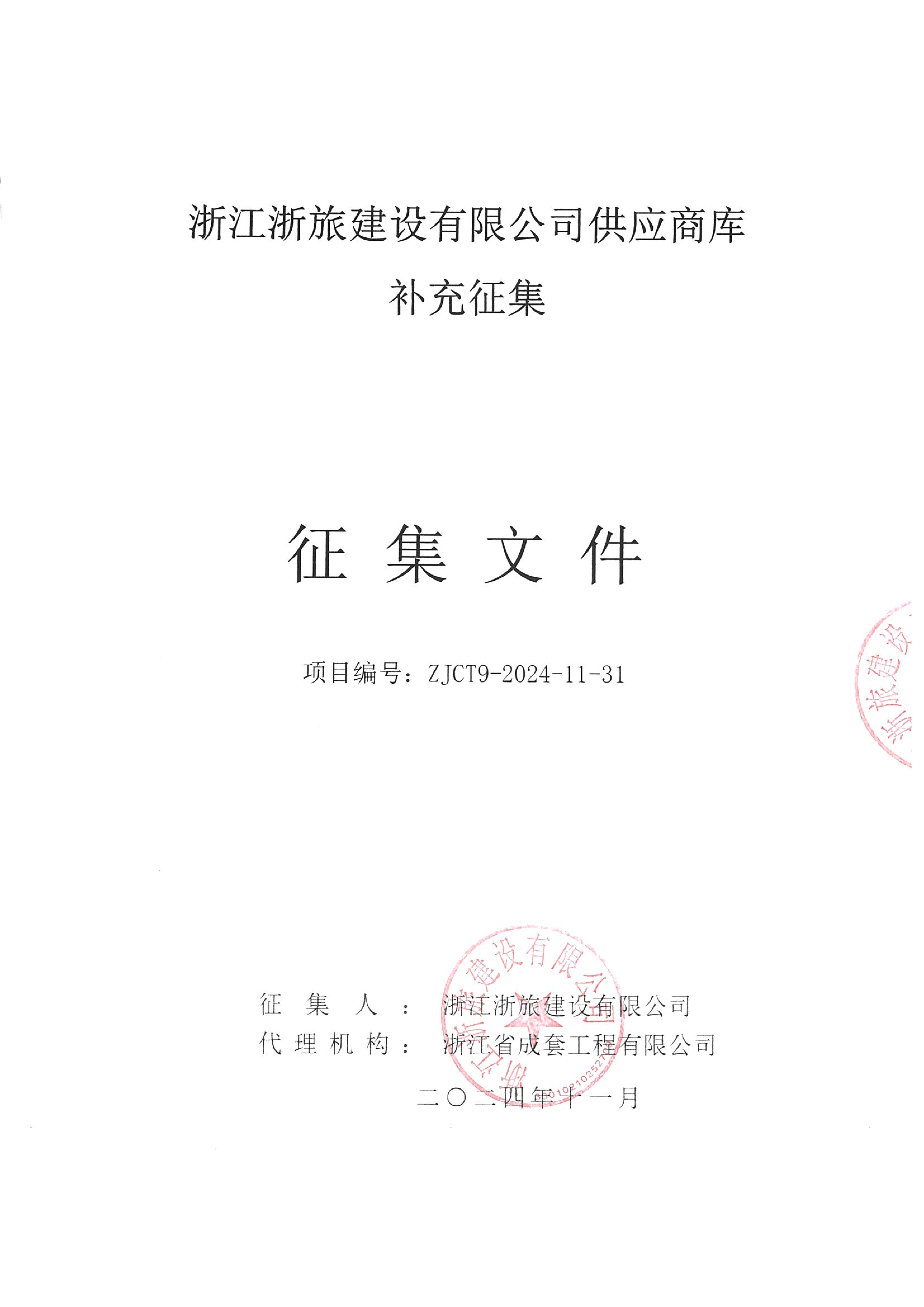 浙江浙旅建設(shè)有限公司供應(yīng)商庫補充征集