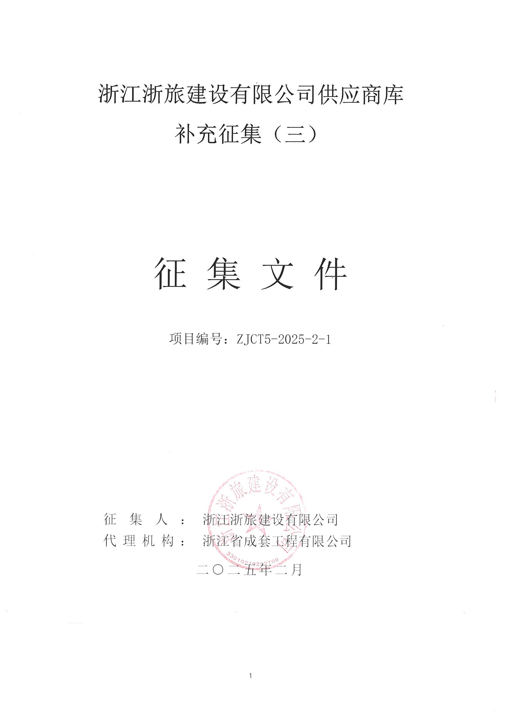 浙江浙旅建設有限公司供應商補充征集(四)征集公告